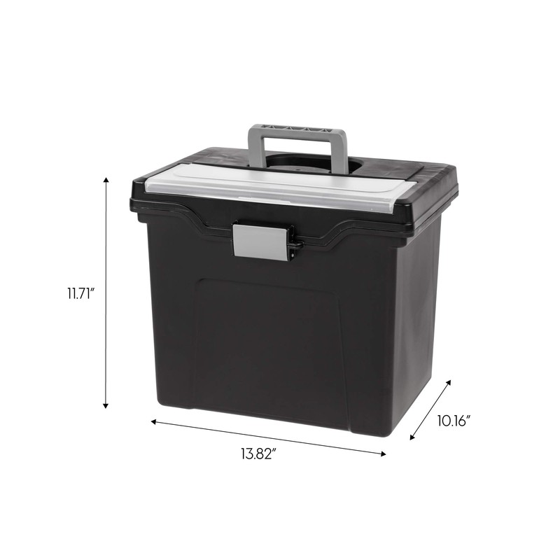 IRIS USA Portable Letter Size File Box with Built-In Organizer Lid and Handle for Hanging Folders, Large, Black