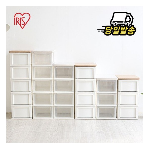 Iris wood top plastic dresser 3-tier, 4-tier, 5-tier Procini series WTS, Procini 3-tier/transparent + top beige / 아이리스 우드상판 플라스틱 서랍장 3단4단5단 프로치니 시리즈 WTS, 프로치니 3단/투명+상판 베이지