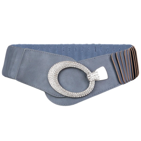 irisaa Wide Women's Elastic Waist Belt, Waist Belt, Stretch Belt with Hook Closure, blue rhinestone