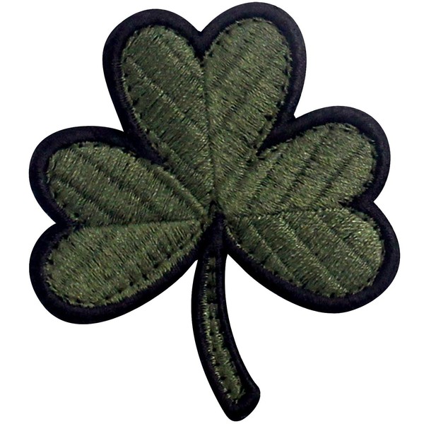 Irish Clover Dark Green Lucky Shamrock Irish Applique Embroidered Velcro Patch, Olive