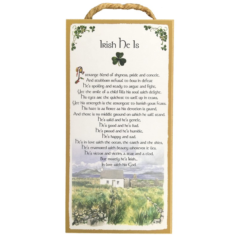 Irish He Is - Irishman Poem - 5x10 Inch Hanging Wooden Plaque