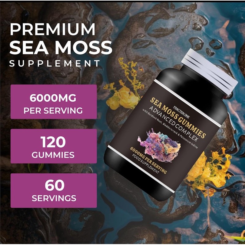Irish SEA Moss Gummies | 120 Gummies | HIGH Strength | 6000MG | Advanced Complex | Irish SEA Moss | Burdock Root | BLADDERWRACK | Potassium Iodine |Sugar Free | 60 Servings | 2 Months Supply | Vegan
