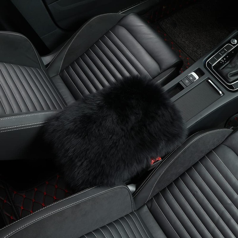 IRIWOOL Genuine Sheepskin Universal car armrest pad (Long Wool, Black)