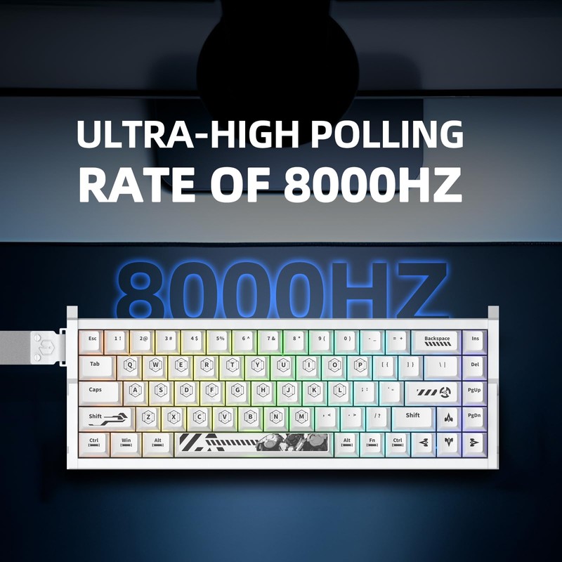 - 【Customizable Keystrokes Travel&low Latency】:MG68PRO magnetic keyboard each key can be 0.01mm accurate, response rate 8KHZ, with customizable keystrokes travle from 0.01mm to 3.5mm, and the delay can be as low as 0.125ms, achieving a zero-perception latency experience.matching the keystroke needs of different games.This magnetic switch has a trigger force of 35±5GF and a service life of approximately 100 million times.