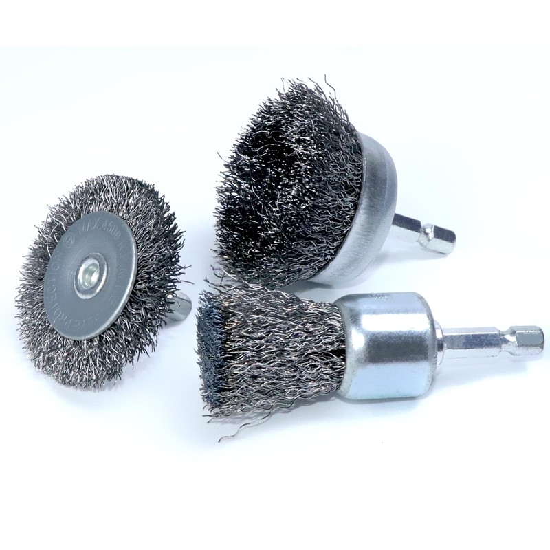 - 【Assorted Small Wire Brushes】3 Piece Wire Brush Set: Diameter 2"(50mm)*1 Cup Brush, 1"(25mm)*1 Pen Brush, 2"(50mm)*1 Wire Wheel Brush, this different size polishing finish brush kit makes cleaning virtually any surface quick and easy