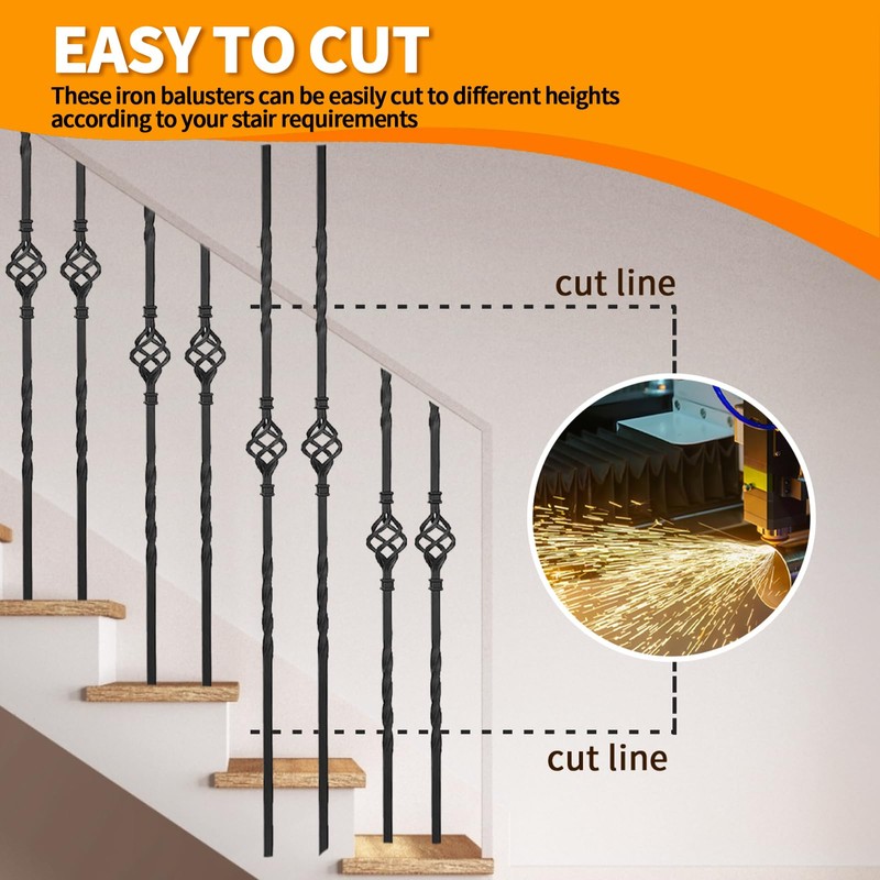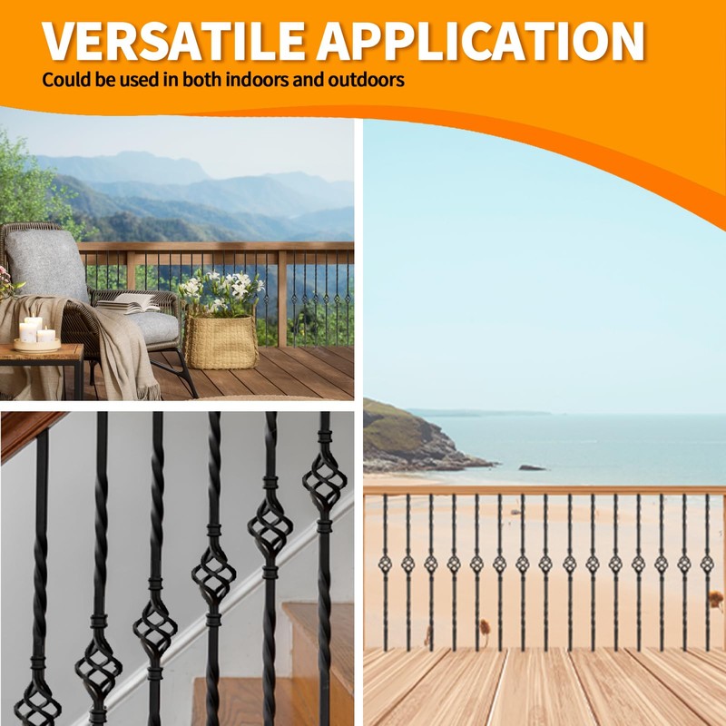 - Easy to Assemble: Installing our railing balusters is a breeze. The package of metal balusters for deck railing is equipped with complete installation accessories, illustrated instructions, clear steps, with household screwdrivers, wrenches and other tools, you can quickly complete the installation of black metal balusters, easy to create a beautiful staircase environment