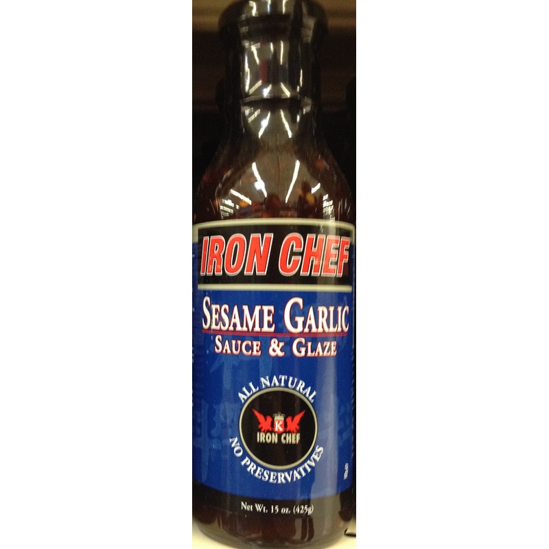 - Perfect for a weeknight dinner or a weekend barbecue, Iron Chef Sesame Garlic Sauce & Glaze will add Near-East flair to any meal.