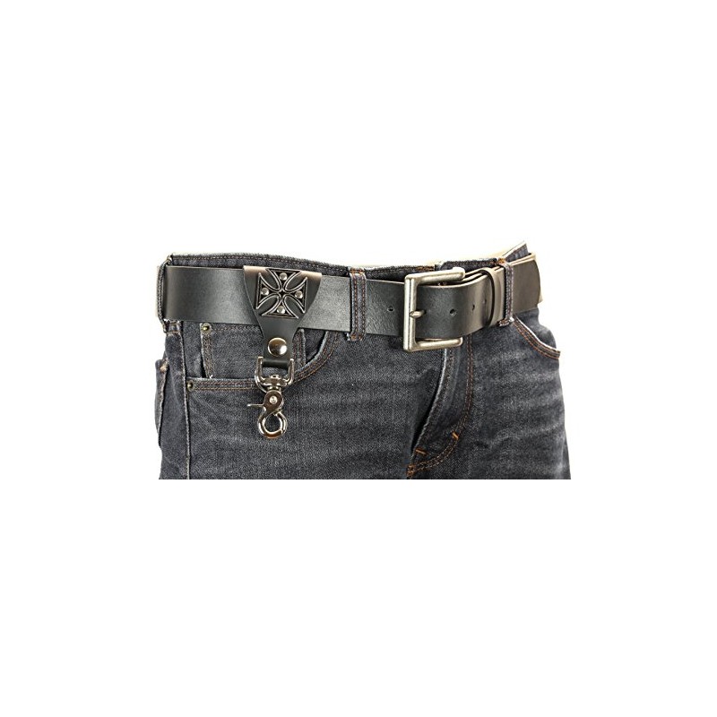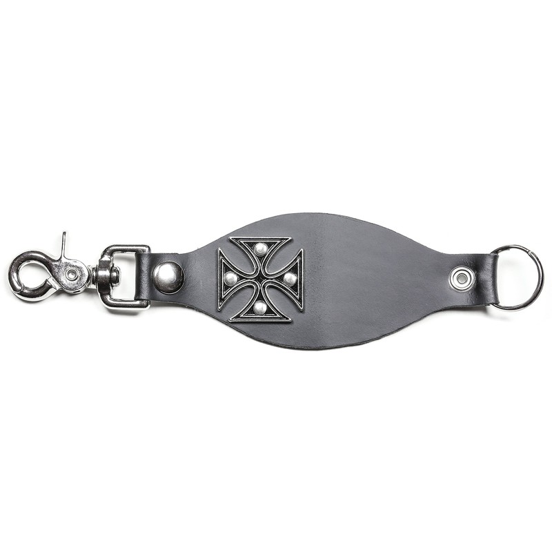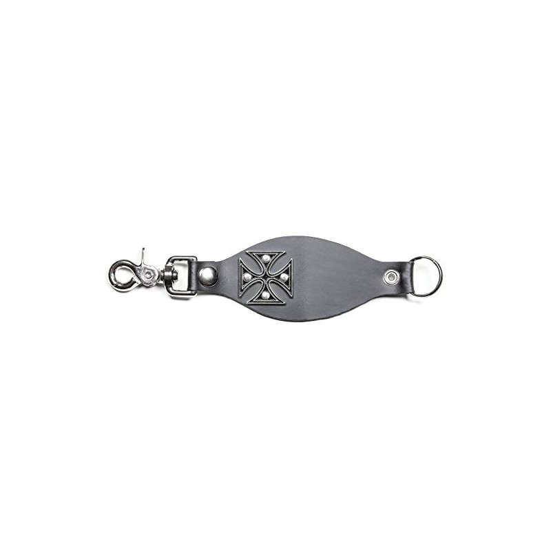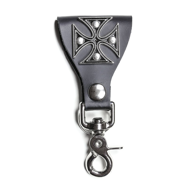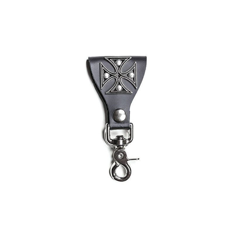 Iron Cross Leather Belt Key Chain Holder Trigger Clasp Key Ring Utility Bikers (Black)