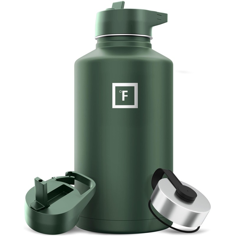 IRON FLASK IRON FLASK Camping & Hiking Hydration Flask with 3 Lids - Stainless Steel, Double Walled & Vacuum Insulated Water Bottle - Leak Proof & BPA Free (Sage, Straw - 64 oz)
