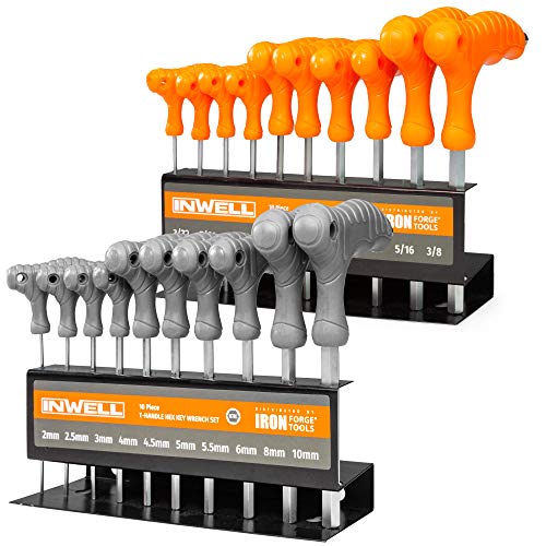 Iron Forge Tools 20 Piece T Handle Allen Wrench Set - SAE & Metric Hex Key Set with Stand