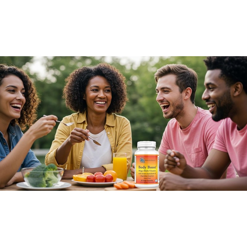 Iron-Free Mega Multivitamin and Mineral Supplement with Green Superfoods and Digestive Enzymes- Body Boost® by Alternative Health Research