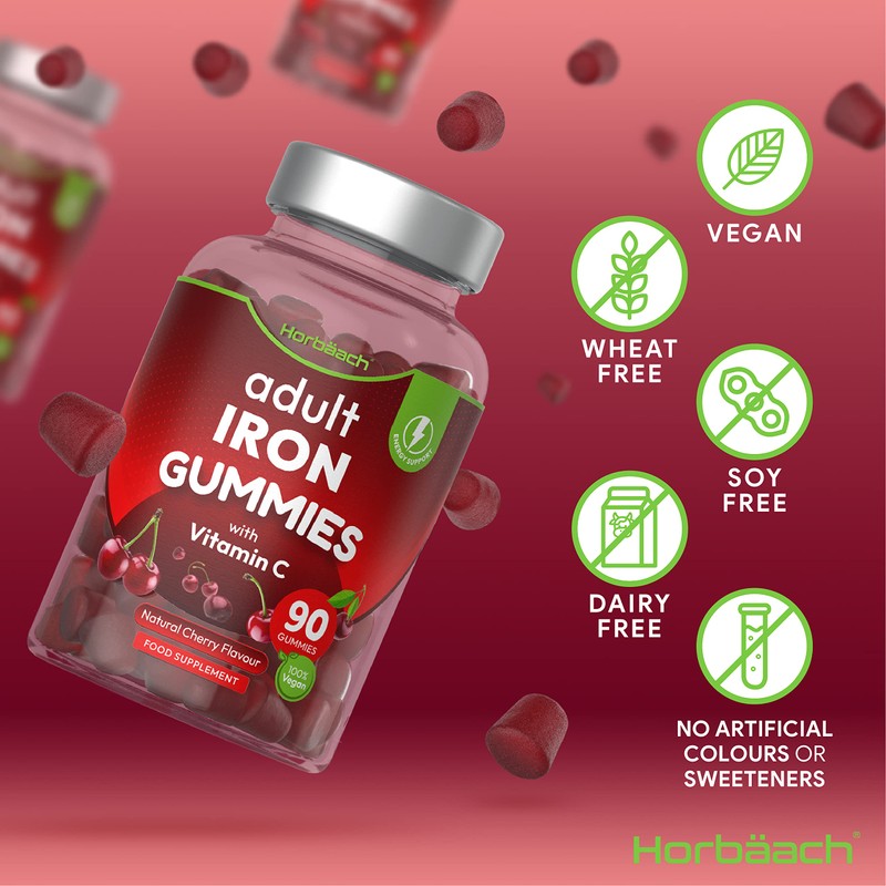 - SUITABLE FOR: Horbaach Adult Iron Gummies are free from artificial preservatives, are vegan and vegetarian friendly and are suitable for both adult men and women.