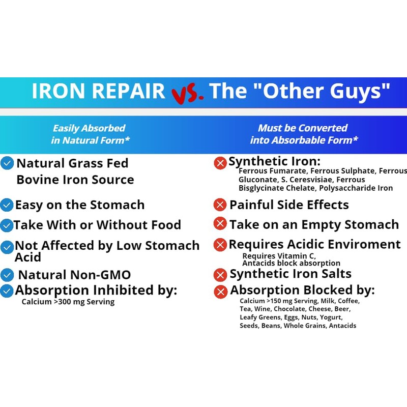 - IRON SUPPLEMENTS WEREN'T DOING US ANY FAVORS - SO WE CREATED ONE THAT WILL: Iron Repair was created by an anemia survivor to help others FIGHT BACK against iron deficiency!