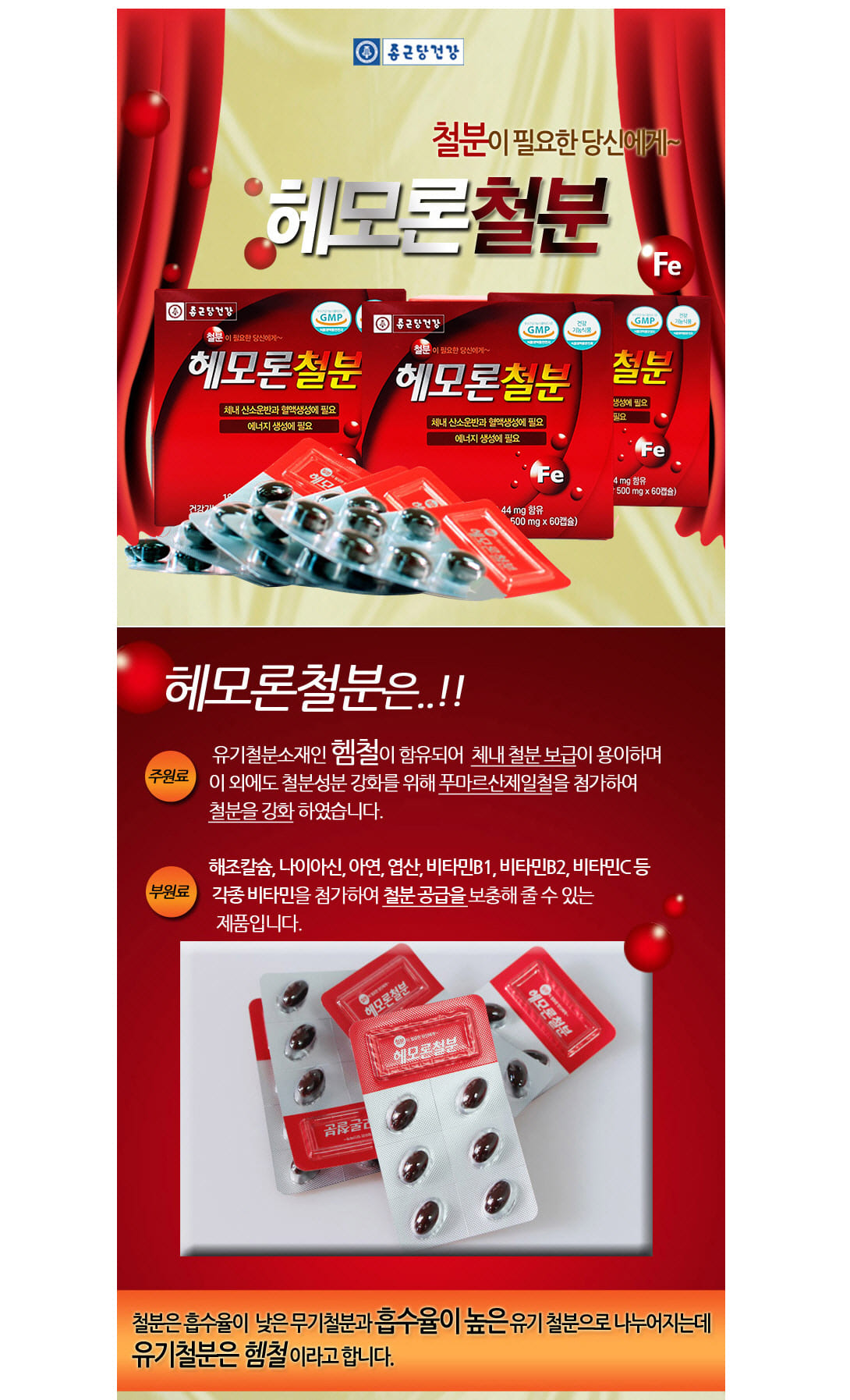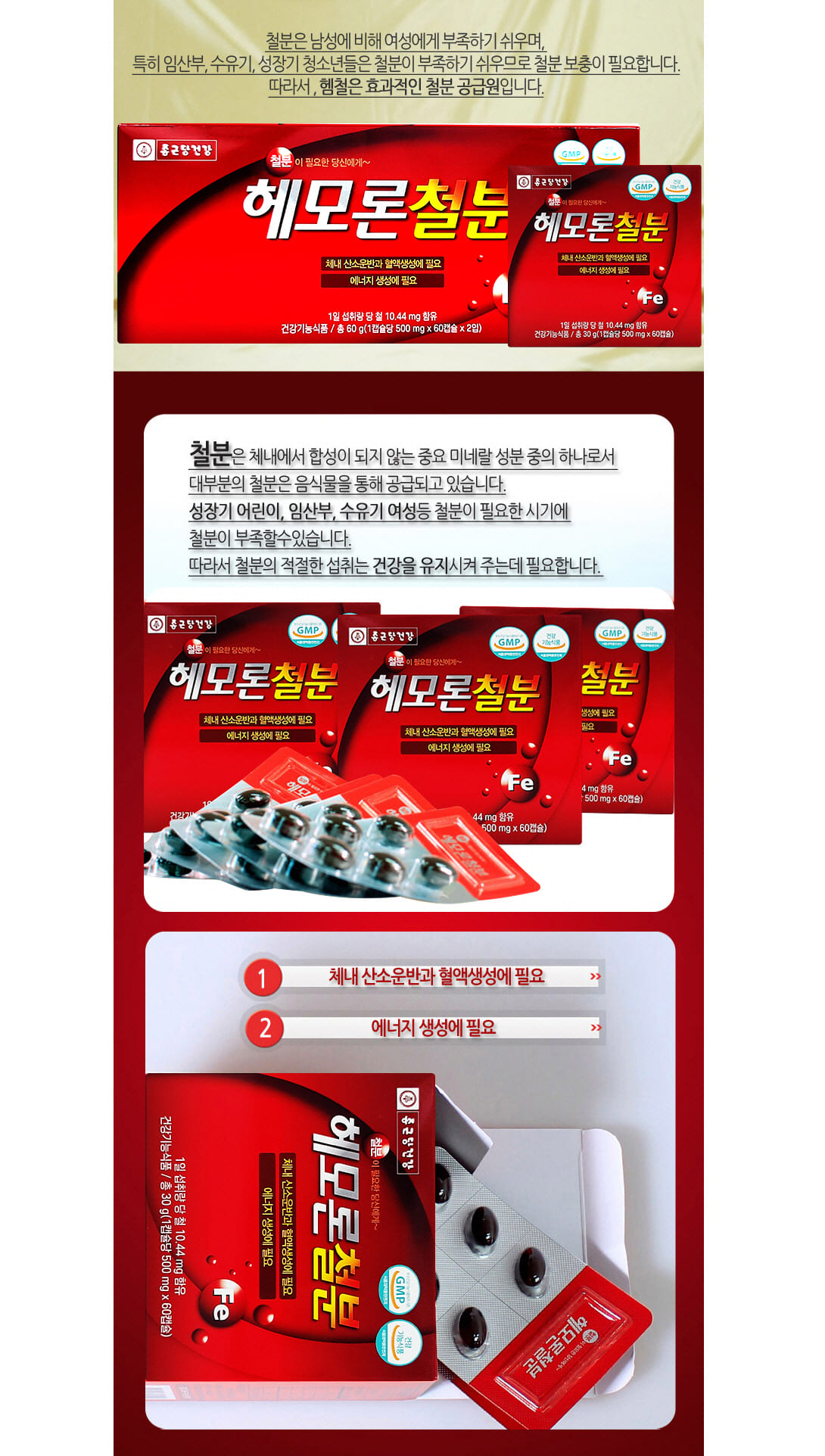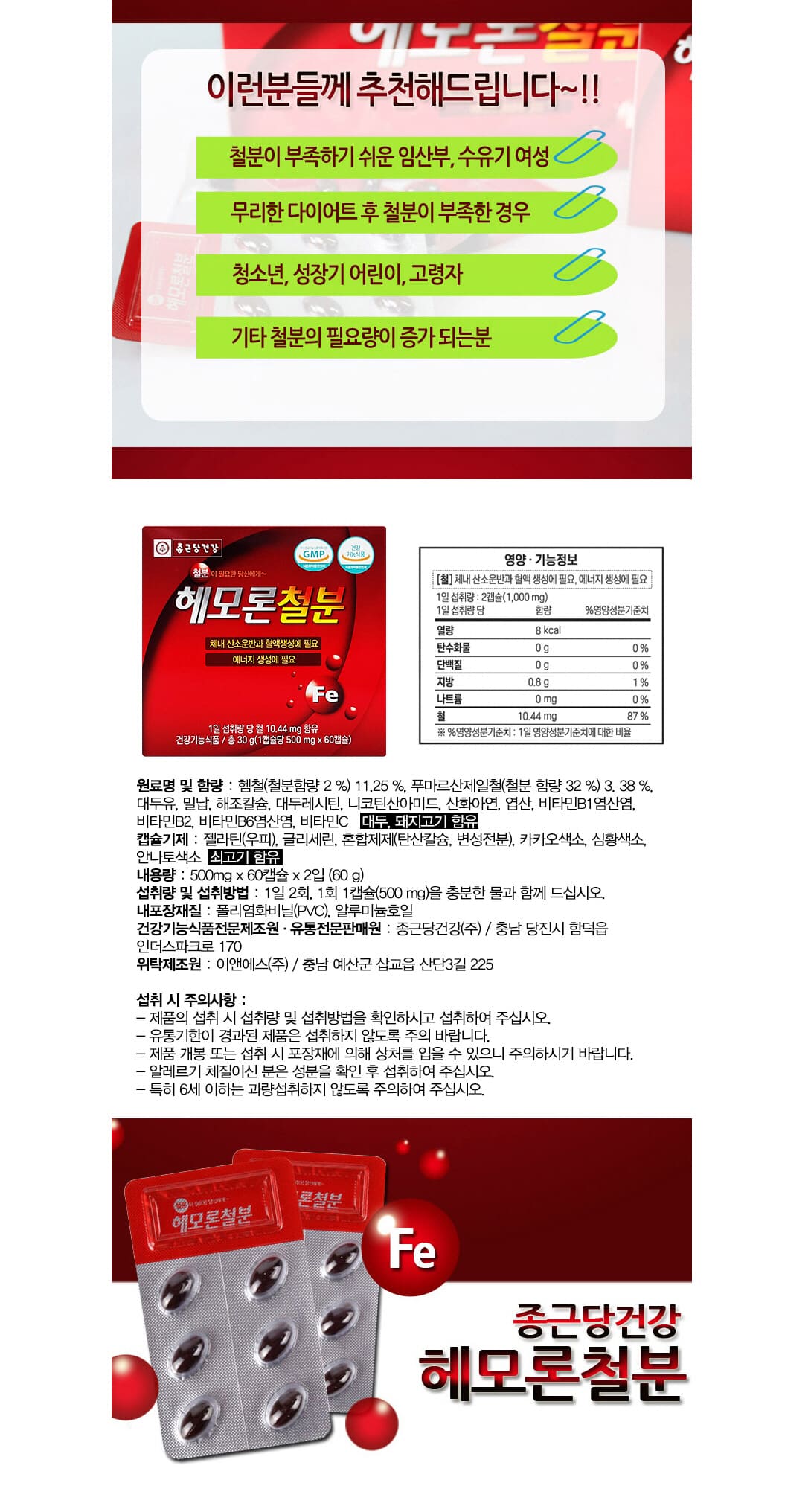 Iron supplement without constipation, iron supplement for pregnant women, Chong Kun Dang Health Hemoron 120 capsules, folic acid nutritional supplement for women / 변비없는 철분제 임산부 철분 종근당건강 헤모론 120캡슐 여성 엽산 영양제
