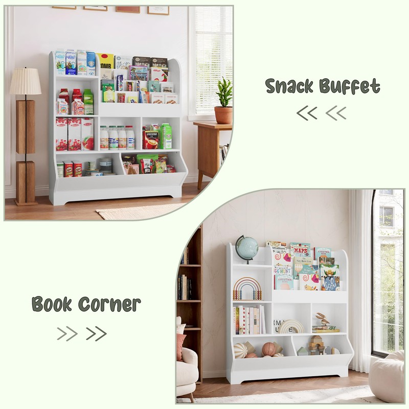 - Fit For The Whole Family: In addition to being a toy organizer, the bookcases' versatility allows it to play multiple roles; you can put it in your living room as a snack and drink buffet area or in your study as a book corner.
