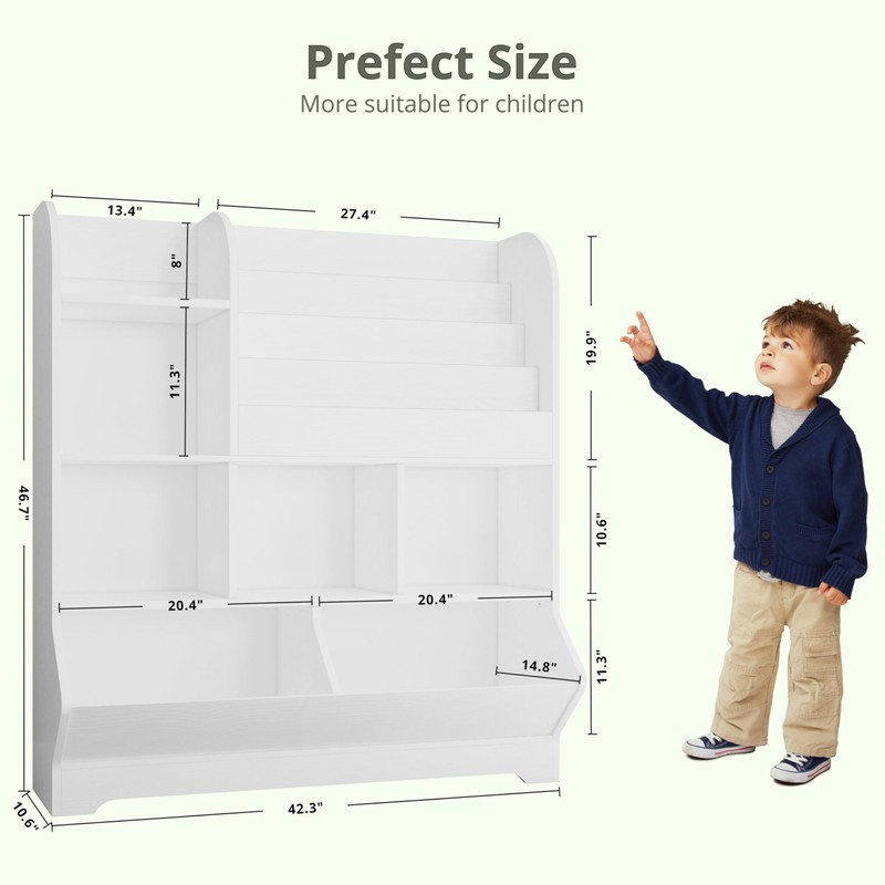 - More Suitable For Little Ones: Open shelves to easily organize all the toys and books, multiple categorized book shelf can help Little ones develop the habit of categorizing and organizing things, so that their thinking and space are more tidy.