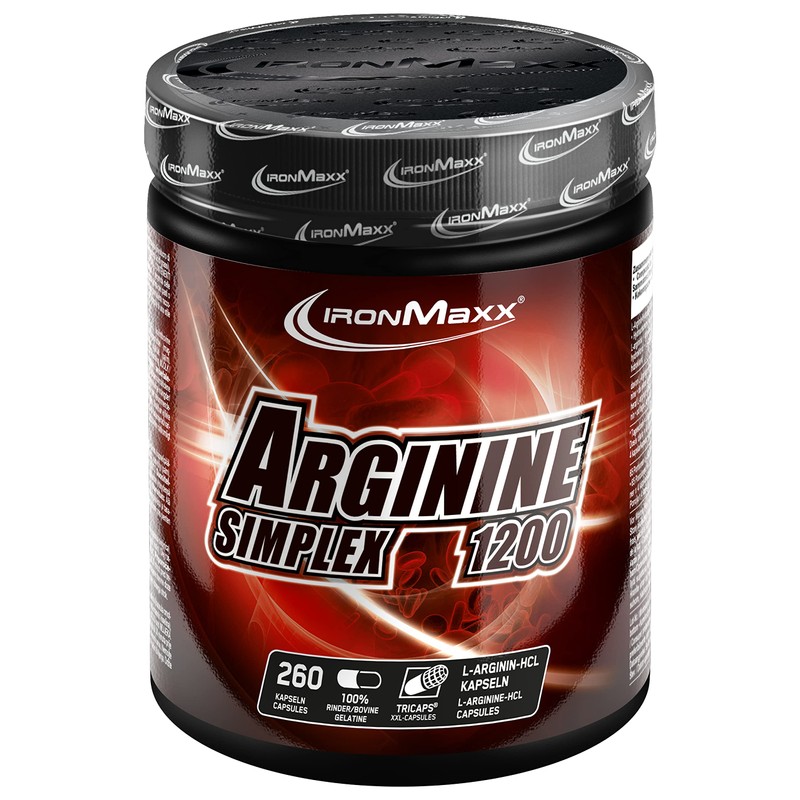 - Box contents: IronMaxx Arginine Simplex 1200 / 260 caps made of beef gelatine / aspartame free, gluten-free, no yeast, lactose-free, free from dyes and preservatives, sugar-free, without sweeteners