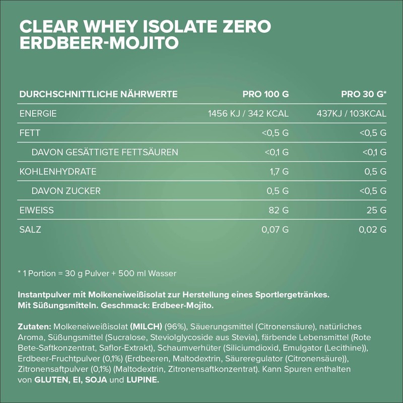 IronMaxx Clear Whey Isolate Zero - Strawberry Mojito 400 g Tin | Clear Whey Protein Isolate without Sugar | Lactose-free Clear Protein | Protein Lemonade with Fruity Refreshing Taste