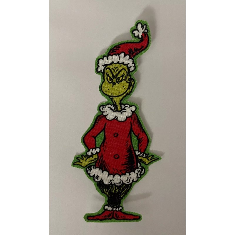 with an iron-on backing. Cute 4 inch silly Grinch patches with his smirky smile.