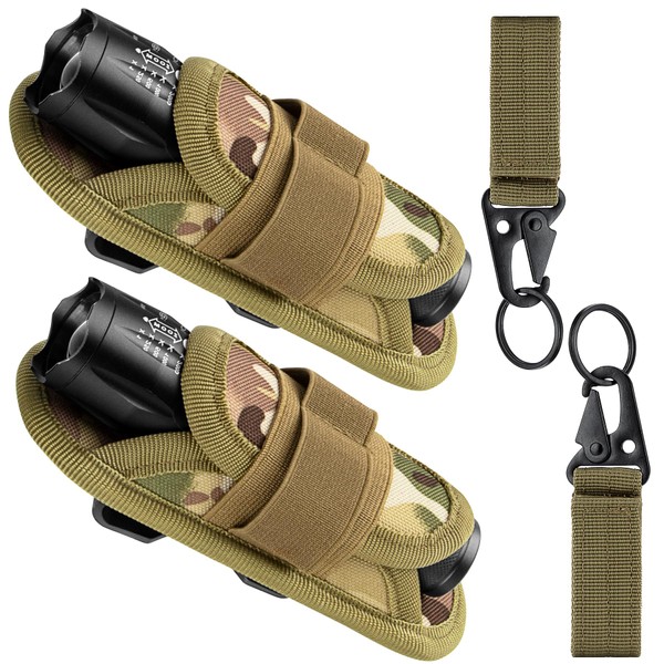 IronSeals 2 Pack 360° Rotatable Clip LED Flashlight Torch Holder Stretchable Adjustable Flashlight Torch Holster Holder Belt Case Pouch
