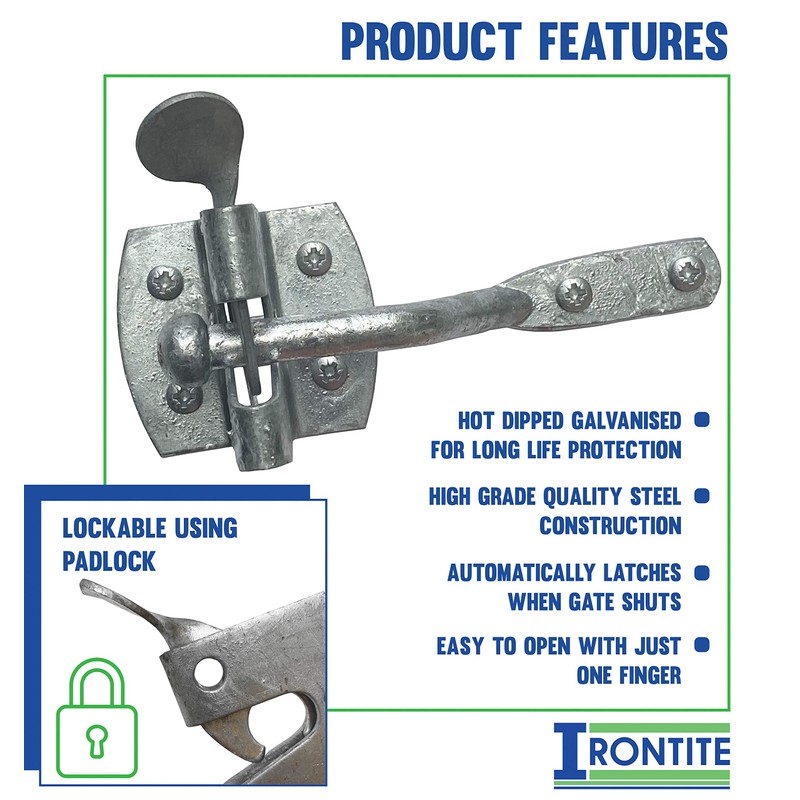 - ★ SECURITY: Use this IRONTITE galvanised gate latch to keep your property secure. Used to keep your garden gates shut and help prevent pets and children from escaping, whilst not offering an unwanted invitation to intruders.