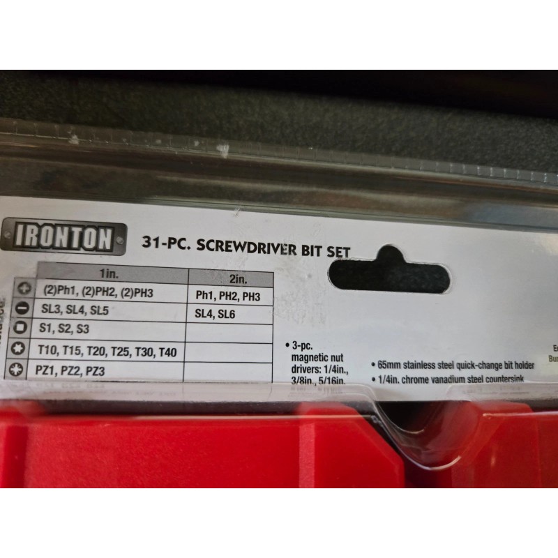Get the job done right with the IRONTON 31-PieceScrewdriver Bit Set, a reliable and versatile solution for your DIY,automotive, and home repair needs. Whether you're working on detailedelectronics or heavy-duty projects, this compact set has the right bit for thetask.