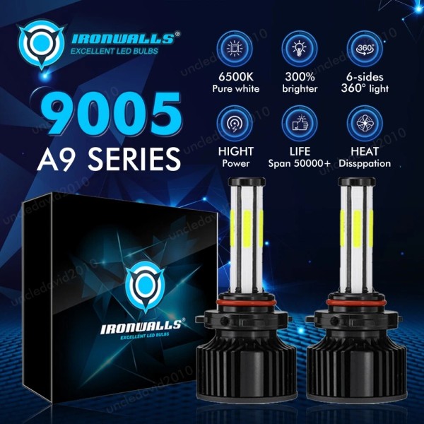 IRONWALLS 6-sides 9005 HB3 LED Headlight Bulbs Kit High Beam White Super Bright 1500000LM