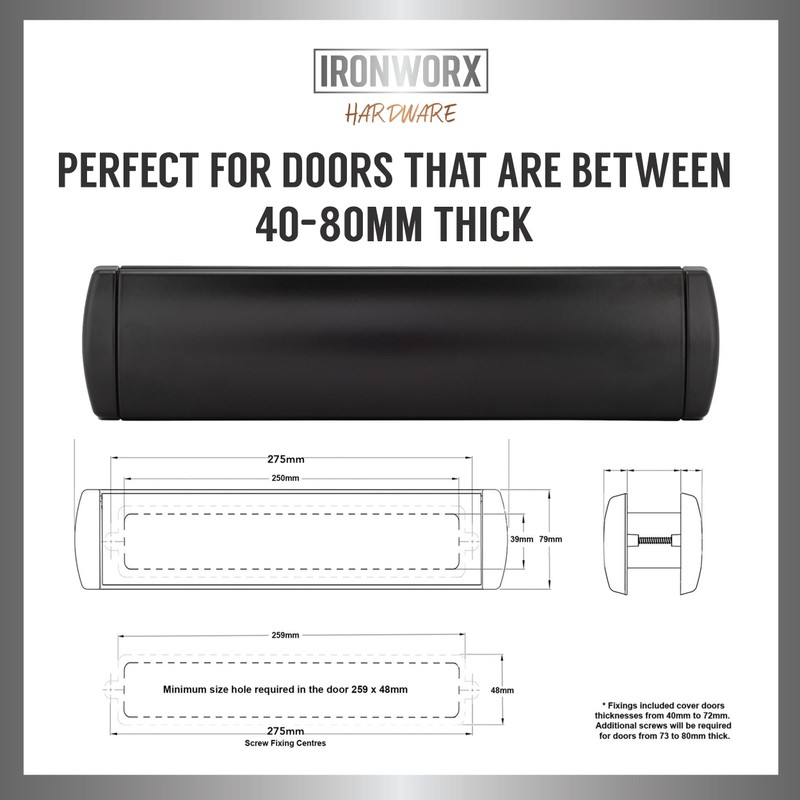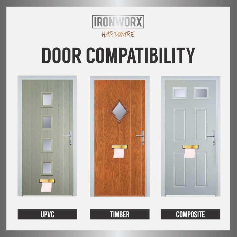 - UNIVERSAL COMPATIBILITY - Enigma letterboxes are designed to integrate effortlessly with all door types and styles. Compatible with UPVC, composite and timber, this letterbox design is ideal for homes and businesses with doors and mid-rails from 40-80mm thick.