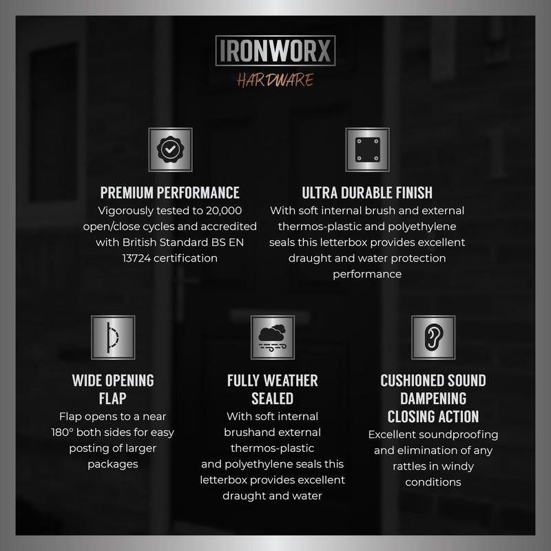 - PREMIUM METAL LETTERBOXES FROM IRONWORX - IRONWORX is a home-grown brand, known for designing and supplying high-quality, door and window furniture right here in the UK. Whether you’re fed up with soggy post, tired of flimsy plastic alternatives, or simply want to mix up the look of your front door, the unique features of IRONWORX Enigma Premium metal letterboxes are the solution.