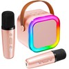 IROO Mini Karaoke Machine for Kids, Galentines Birthday Gifts for Girls Boys Toy 4, 5, 6, 7, 8, 9, 10, 12+, Portable Bluetooth Speaker with 2 Wireless Mics, Karafun Premium Songs for All Ages(Rose Gold)