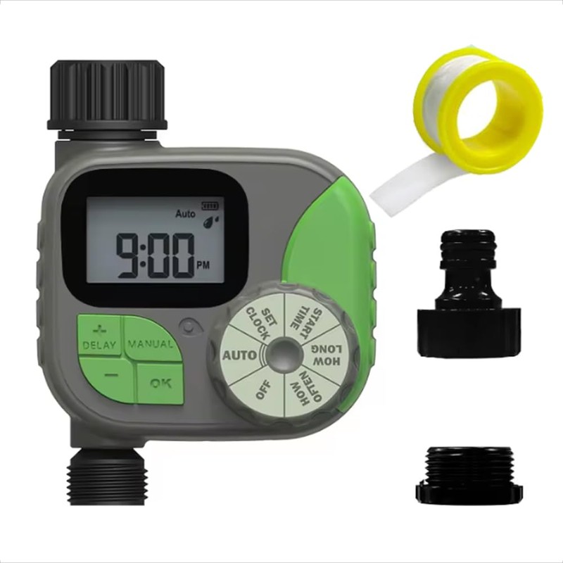 • Waterproof & Leak-Proof -- Our Garden timer is built in with heavy-duty weatherproof construction, UV-resistant material, ideal for outdoor garden watering use, including gravity drip irrigation, garden hose watering, lawn sprinkler control, greenhouse mist systems, pool filling, birdbath dripping, rain barrels, pet drinking, and more.