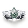- ♕【Designer's words】This art deco bridal ring set is of heirloom-quality, showcasing a classic and striking design. The engagement ring boasts a 6x9mm pear-shaped Natural Moss Agate at its center, accentuated by the gleaming round-cut White Moissanites clustered around it. The matching wedding band has a V-shaped open ring style, setting with lustrous Black Spinels in a cluster. This captivating, exquisite bridal ring set is perfect for women seeking elegant and unconventional gemstone rings.