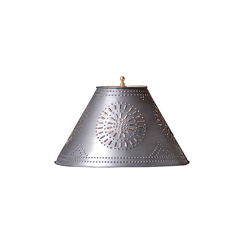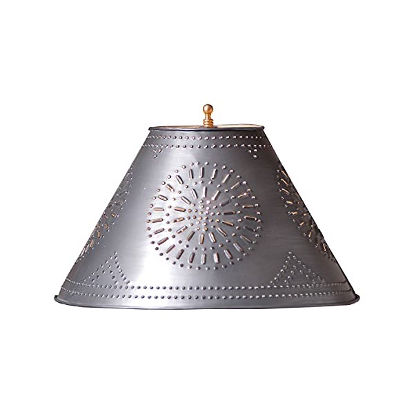Irvin's Tinware, K16-03BZ, 15-Inch Metal Flared Shade with Punched Chisel Design in Antique Tin, Rustic Country Lighting