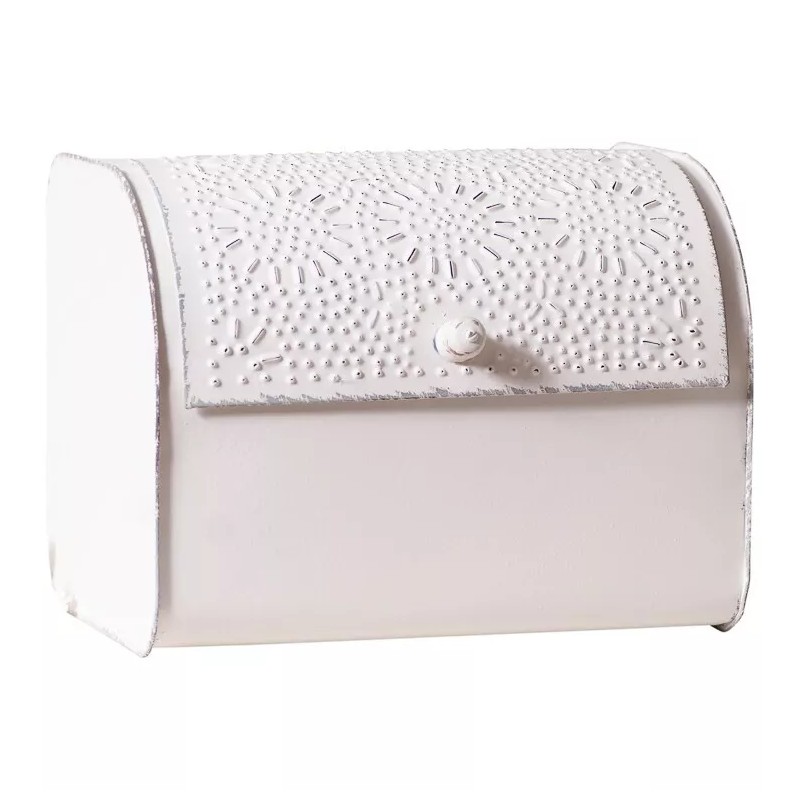Irvin's Tinware Rustic White Bread Box - Punched Tin Design