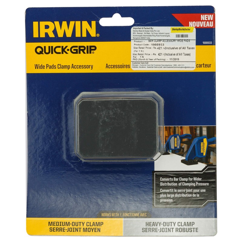 IRWIN 1988933 Quick-Grip Wide Pads for One-Handed Bar Clamps - Black/Blue