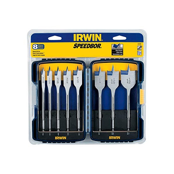 Irwin 341008 8-Pcs 6" x 1/4" Blue-Groove Hex Shank Speedbor Spade Bit Set