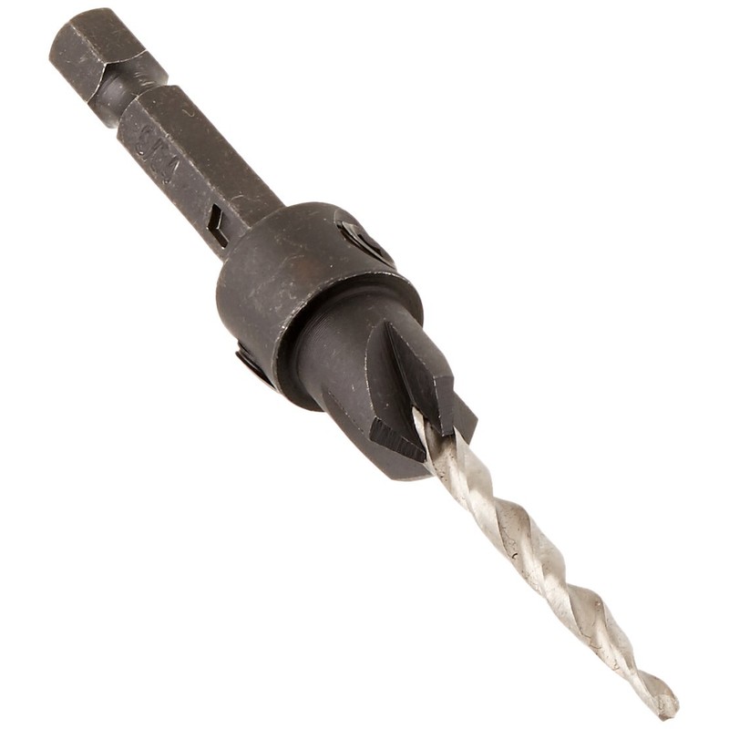 IRWIN Wood Countersinks feature a tapered drill and wide flutes that drill fast, clean pilot holes, and ensure a tight fit for screws. They have an adjustable four-cutter counterbore attachment that cuts fast and clears chips quickly for fast, smooth countersinking applications. The counterbore feature attaches flats on shank with two hex screws for a secure fit, and can be adjusted for controlled pilot hole depth. IRWIN SPEEDBOR countersink bits fit all standard 1/4" quick-change chucks, including impact drills.