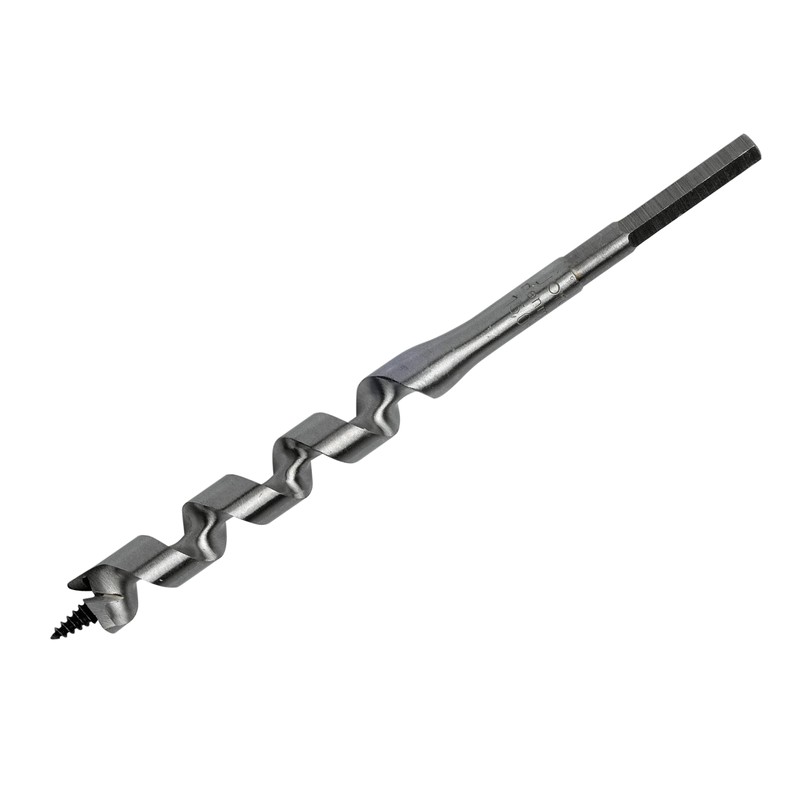 The Irwin auger wood drill bit has been designed for all general wood boring and offers a superior performance. The single spur cutting edge scribes the circumference of the hole for a smoother quality finish. The hexagon shank prevents slipping in a drill chuck or bit extension. The solid centre provides extra rigidity whilst boring, the self-feeding screw point provides faster boring in both soft and hard woods and the fully hardened body from tip to shank provides extra durability. The Irwin IRW10502774 Auger drill bit has the following dimensions:Drillbit diameter: 24.0mmTotal length: 191mmWorking Length: 126mm Wood Auger Drill Bit 25 x 191mm