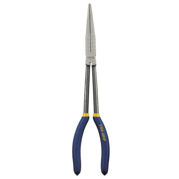 The Irwin Tools 1773388 VISE-GRIP 11-Inch Long Reach Flat Nose Pliers provides users a long reaching tool to get into confined spaces and complete the job that needs to get done. With the flat nose, access to the job becomes much easier. The machined jaws on the long reach pliers provide maximum gripping power. Like all Vise-Grip tools, this tool comes with a lifetime guarantee.