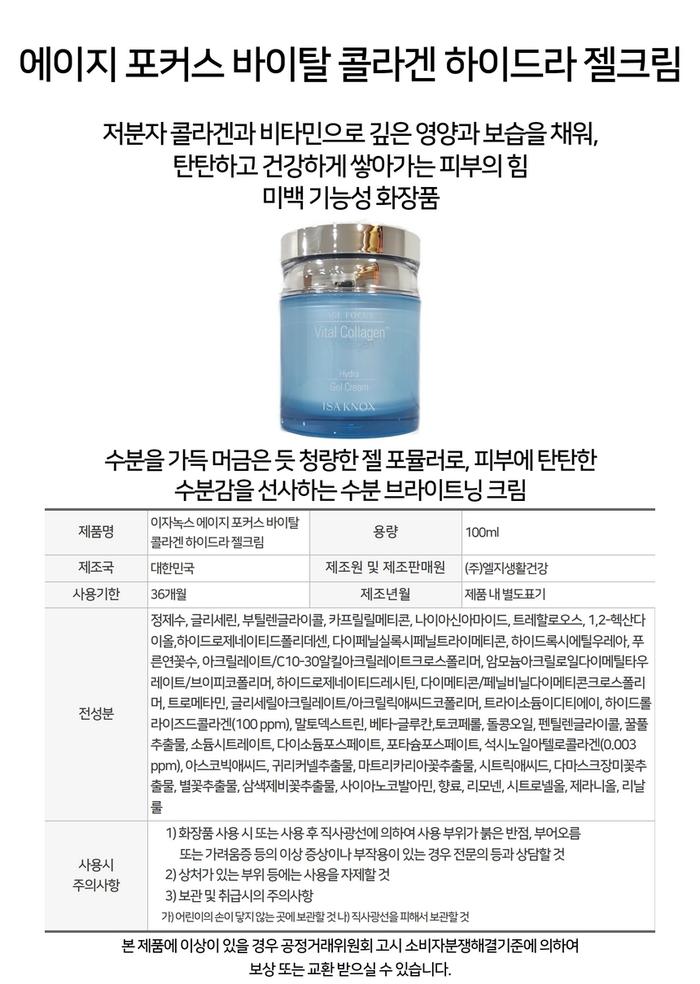 ISA KNOX Age Focus Vital Collagen Hydra Gel Cream 100ml / 이자녹스 에이지 포커스 바이탈 콜라겐 하이드라 젤크림 100ml