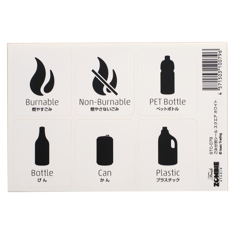- Matte PP laminate on water-resistant paper It is water resistant even in water and has a matte texture that matches a variety of garbage cans. Black image on white background