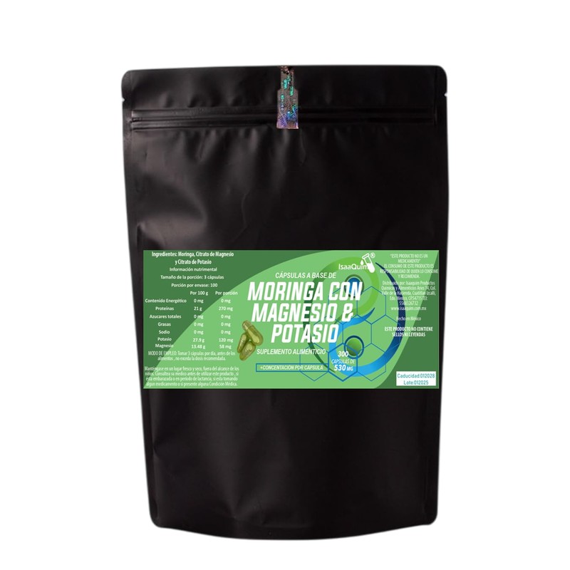 IsaaQuim Citrato de Potasio + Citrato de Magnesio + Moringa 300 capsulas de 530 mg
