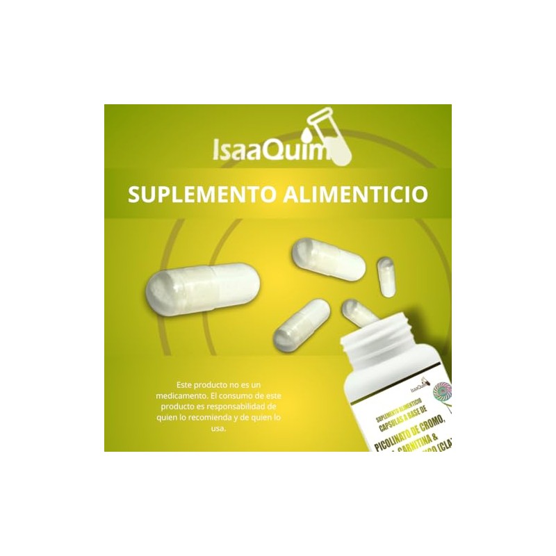 🌟 ⭐ IsaaQuim | Picolinato de Cromo con L-Carnitina y Ácido Linoleico (CLA) | 120 Cápsulas de 400 mg | Porción: 3 cápsulas – 450 mg de CLA + 450 mg de L-Carnitina + 22 mcg de Cromo ⭐ 🌟