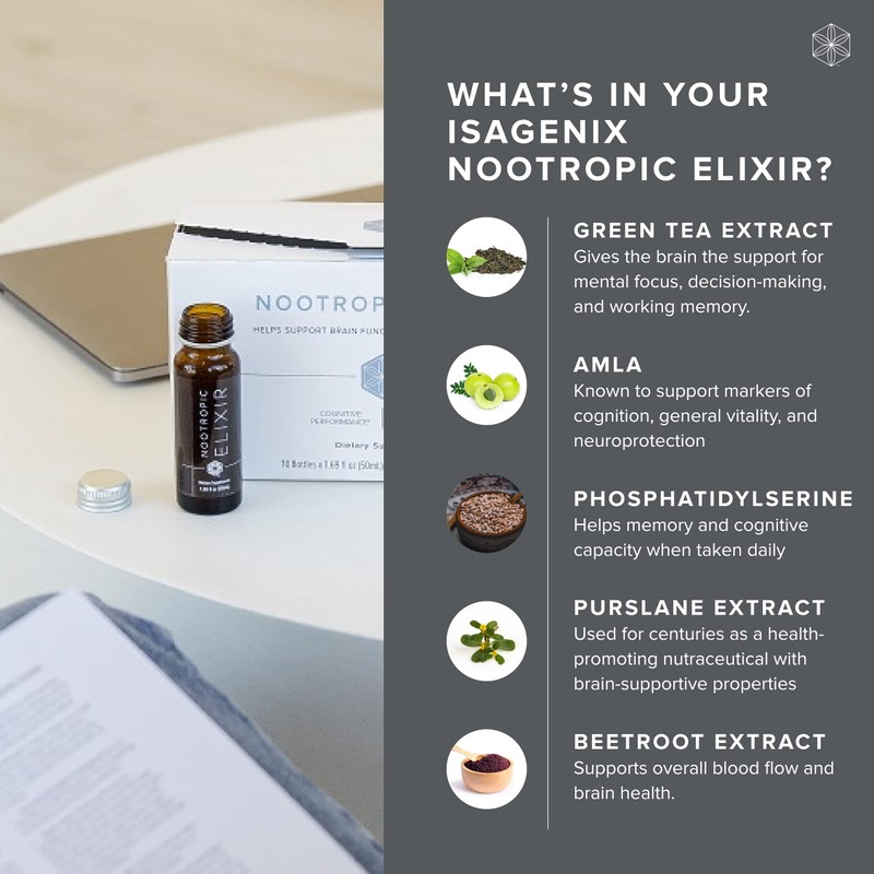 Isagenix Nootropic Elixir- Brain Health & Focus Supplement - Liquid Supplement with Green Tea Extract to Support a Healthy Mindset - 1.69 Oz Bottles (10 Count)