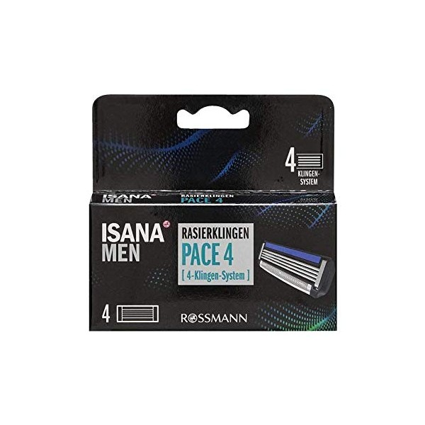 ISANA Men Pace 4 Razor Blades 4 Pieces 4 Blade System with Care Lubricating Strips