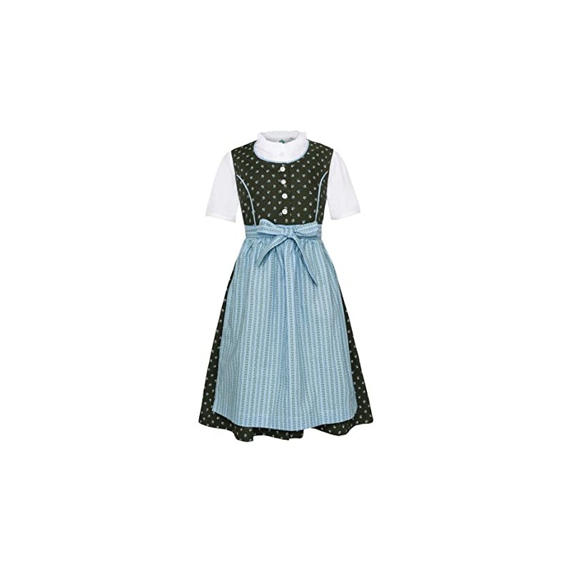 Isar-Trachten Children's Dirndl 3-Piece Dress Blouse Apron for Girls Oktoberfest Church Consecration Wedding Sunday Trip Green/Blue, green / blue