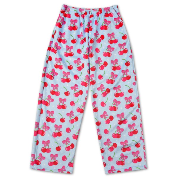 iscream Big Girls Pretty Print Silky Soft Plush Pants - Cheerful Cherries, Small (6/8)