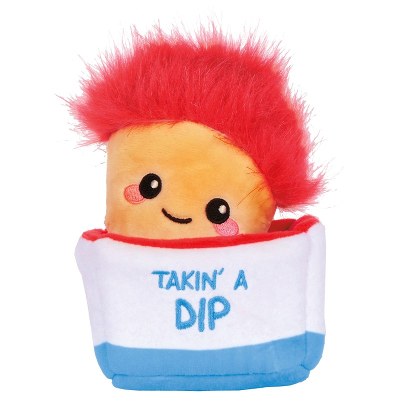 - Fun set includes five chicken nuggets, one ketchup packet and one dipping cup all tucked into the large plushie container