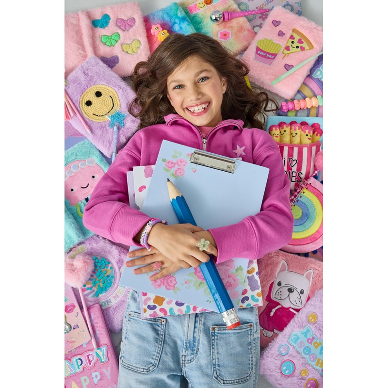 Girls love to have a special journal where they can write thoughts, doodles, secrets and wishes! This fun journal is the perfect book to set the mood for writing fun and happy ideas because what could be better than a plush furry journal with darling jellyfish applique? Gather autographs from summer camp friends, glue in photos and clippings - the options are endless! A journal is also an excellent way to encourage a reluctant writer to practice penmanship and grammar skills without making it feel like "homework", too! Journal features a book bound spine with 80 double-sided, colorful border lined pages that offer plenty of journaling space and a ribbon place holder so she'll always open right to where she left off. Journal measures approximately 6.25" wide x 8.75" high.