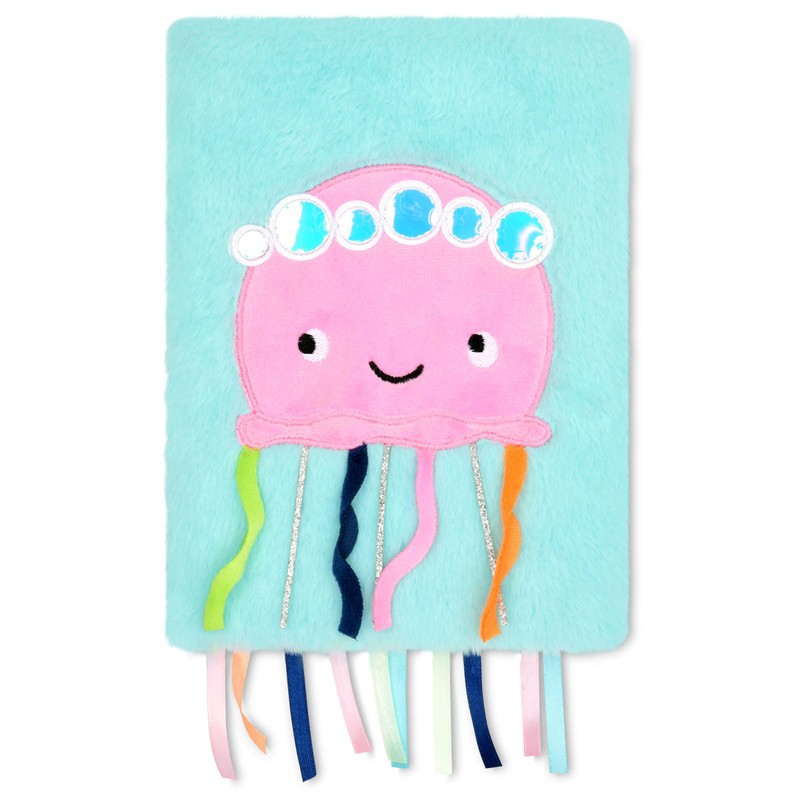 • This fun journal is the perfect book to set the mood for writing fun and happy ideas because what could be better than a plush furry journal with darling jellyfish applique?
